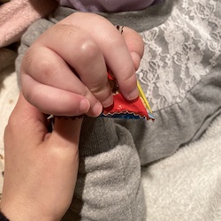 ぎゅっと握って・・・握りすぎて離さない😅しずくでしたが、何回かmamaとぽいっと投げて