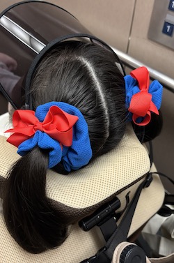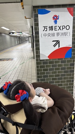 気合いを入れてしずくのヘアゴムはミャクミャクカラーで出発です。