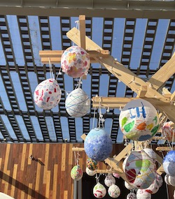 事前にランプシェードを作らせてもらっていて、それが「ペイフォワードの木」に飾り付けられていたので見に行きました。